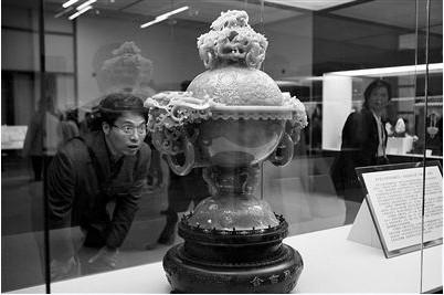 工藝美術(shù)領(lǐng)域也有了雙年展。昨日,2012年“中國當(dāng)代工藝美術(shù)雙年展”在國家博物館開幕,展覽從今日開始至5月6日對外展出。約千件玉雕、木雕、陶瓷等工藝美術(shù)作品構(gòu)成了首屆中國當(dāng)代工藝美術(shù)雙年展。其中中國工藝美術(shù)館收藏作品、國寶級翡翠玉雕“含香聚瑞”花薰等展品成為此次雙年展的重頭戲。