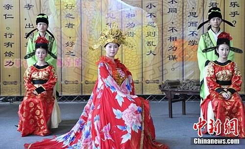 4月24日,古裝美女在中國(濟南)國際演出交易會暨演藝裝備場所設(shè)施展覽會上向觀眾推介演藝項目。當日開幕的該展會有200多家國內(nèi)知名演出公司、演藝裝備場所設(shè)施企業(yè)向參觀者推介演藝項目、展示演出設(shè)施設(shè)備。(來源:中新網(wǎng))