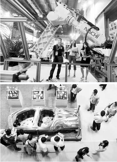 5月9日,由重慶市人民政府、中國(guó)機(jī)械工業(yè)聯(lián)合會(huì)主辦的第13屆立嘉國(guó)際機(jī)械展在重慶國(guó)際會(huì)展中心開(kāi)展。展會(huì)吸引了海內(nèi)外900余家知名企業(yè)參展,展出面積達(dá)4.5萬(wàn)平方米,其中境外展商比例占了40%。圖為觀眾正在觀看展品。(來(lái)源:新華社)