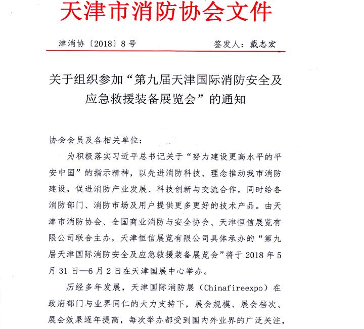 天津市消防協(xié)會-關于主辦2018第九屆天津消防展的通知
