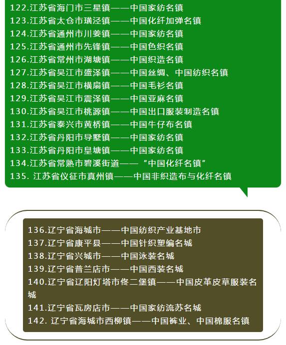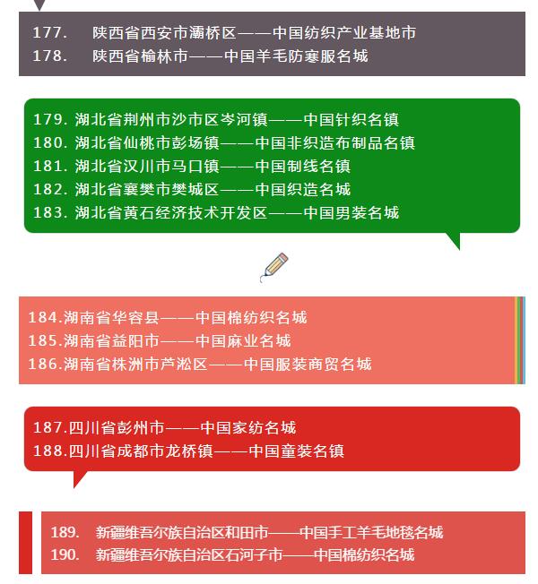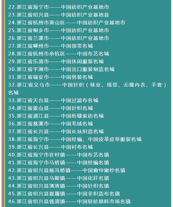 全國各省紡織服裝產(chǎn)業(yè)集群地區(qū)名單