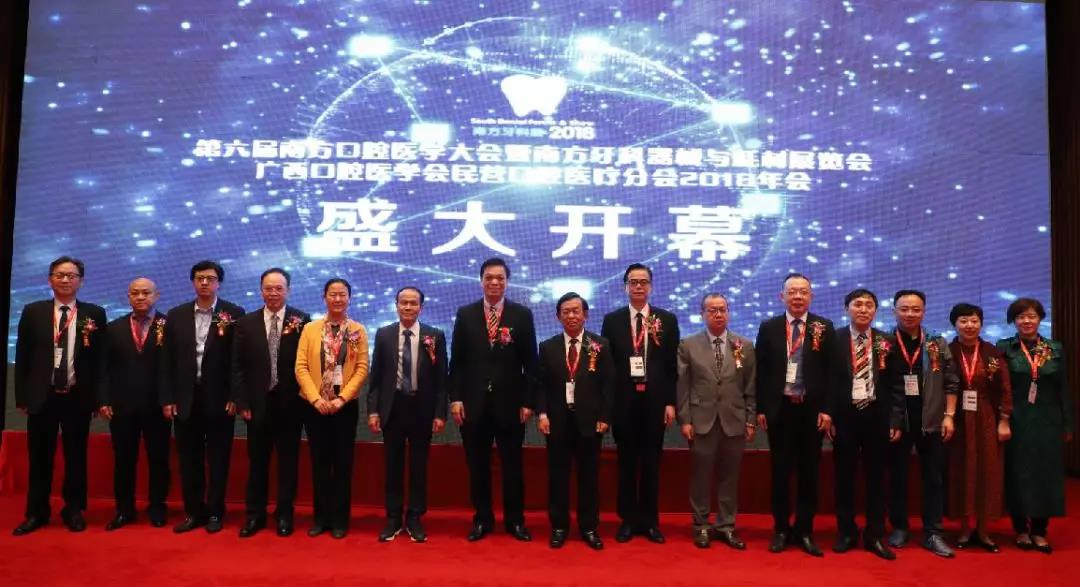 出席開幕式的嘉賓:中華口腔醫(yī)學(xué)會副會長、廣西醫(yī)科大學(xué)副校長、廣西口腔醫(yī)學(xué)會會長周諾;中國牙病防治基金會理事長、北京大學(xué)口腔醫(yī)學(xué)院教授葛立宏;南方牙科聯(lián)