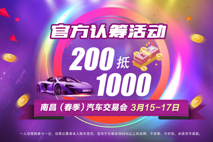 ①參與認(rèn)籌:觀眾至車展現(xiàn)場認(rèn)籌處交納200元認(rèn)籌款并登記,得到一張1000元購車抵扣券。(每人最多認(rèn)籌兩張)