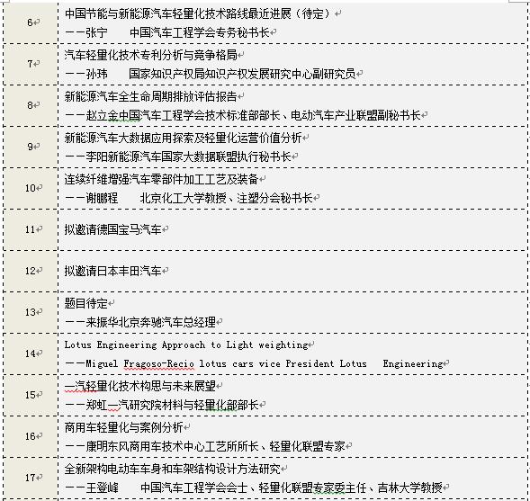 其中,正在與工信部、科技部、廈門金龍、城都大運、中通客車、北汽動力總成、賽麟汽車、漢騰汽車、福特汽車、本田汽車,以及一汽、東風、長安、江淮、上汽等底盤部門匯報和商談參會事項,同時,擬邀請德爾福、西門、麥格納、大陸、延鋒、敏實、奇昊、偉世通、濰柴等全球汽車零部件百強中20多家零部件企業(yè),預計本次參加汽車輕量化大會的中大型汽車企業(yè)有60多家,全球汽車零部件百強中有50多家零部件企業(yè)。