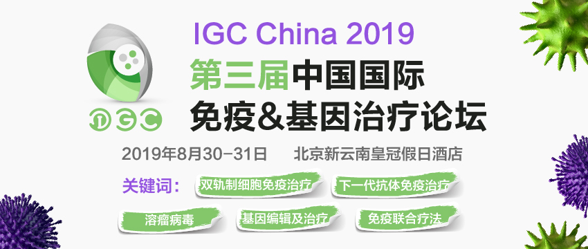 2019年8月30-31日,由中國生物工程學會與商圖信息聯(lián)合主辦,美國華人生物制藥科技協(xié)會(CBA特別支持,一年一度的IGC China 2019第三屆中國國際免疫&基因治療論壇將于北京新云南皇冠假日酒店隆重召開!)