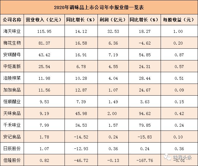 2020年上半年,12家調(diào)味品上市公司的營業(yè)收入總額為320億元,凈利潤總和為61億元。