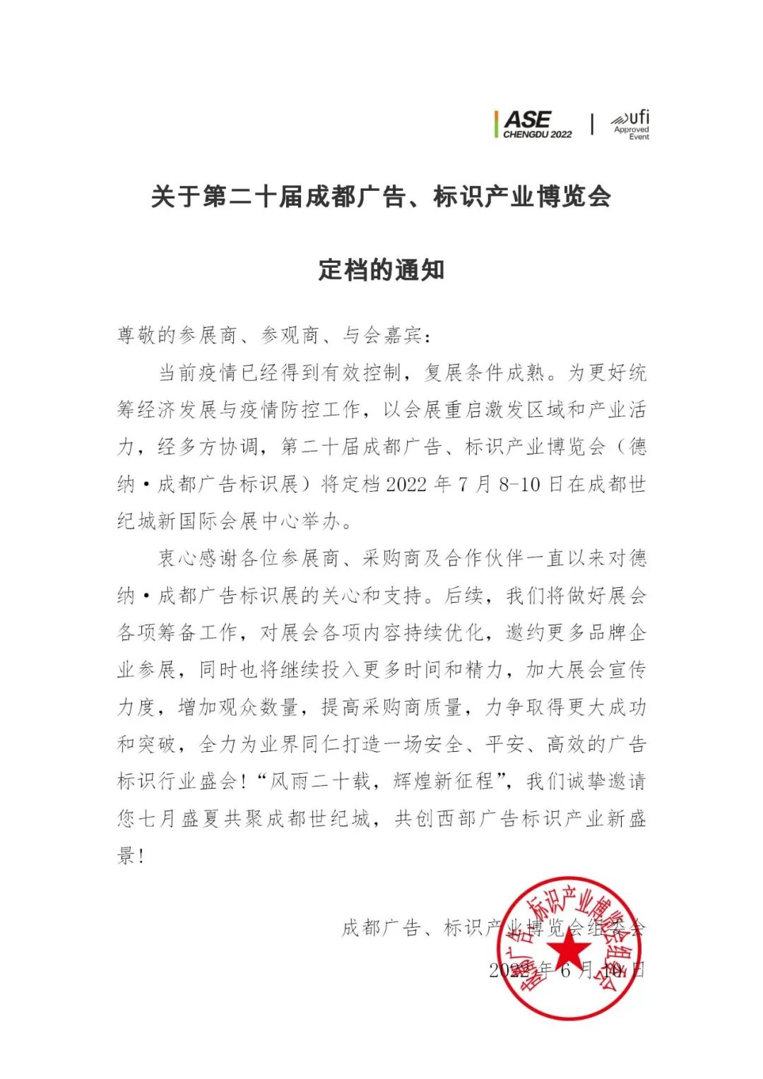 各位支持和關(guān)注德納·成都廣告標(biāo)識(shí)展的朋友們,久等啦!當(dāng)前疫情已經(jīng)得到有效控制,復(fù)展條件成熟為更好統(tǒng)籌經(jīng)濟(jì)發(fā)展與疫情防控工作,以會(huì)展重啟激發(fā)區(qū)域和產(chǎn)業(yè)活力,國(guó)內(nèi)多個(gè)城市恢復(fù)舉辦展會(huì)。經(jīng)多方協(xié)調(diào),第20屆成都廣告、標(biāo)識(shí)產(chǎn)業(yè)博覽會(huì)定檔啦!