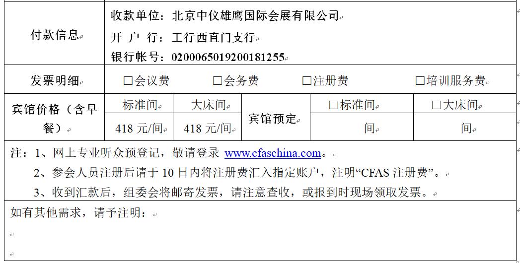 請(qǐng)?jiān)敿?xì)填寫(xiě)以下“回執(zhí)注冊(cè)表”,傳真或者郵件回傳,郵箱:cfas@lanneret.com.cn或280251967@qq.com 傳真:010-82967471 聯(lián)系人:于健 13439755593