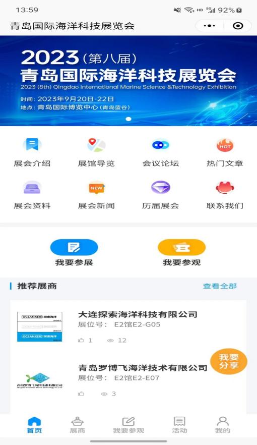 點(diǎn)擊展商秀底邊欄中央的【我要參會】按鈕,直接報(bào)名參加青島海科展,避免現(xiàn)場登記注冊麻煩。提前預(yù)登記的觀眾還可以享有免費(fèi)午餐等展會特權(quán)!
