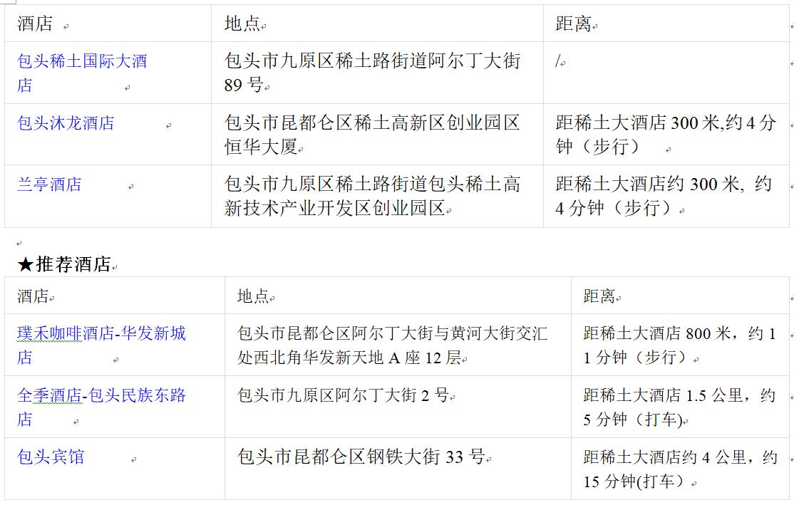 地址 內(nèi)蒙古 包頭稀土國際大酒店