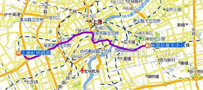 上海新國際博覽中心→上海浦東機(jī)場點(diǎn)擊看大圖乘車路線: