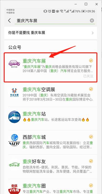 方法1:微信右上角“添加朋友”→公眾號(hào)→搜索“重慶汽車展”點(diǎn)擊關(guān)注即可