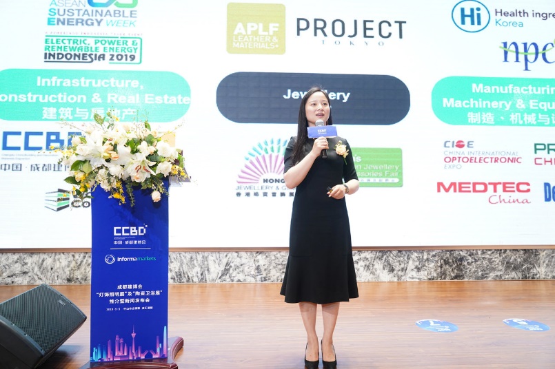 發(fā)布會(huì)首先由英富曼Informa Markets中國董事總經(jīng)理龔康康發(fā)表致辭,她指出,成都建博會(huì)與英富曼集團(tuán)牽手已經(jīng)三年了,無論是從展會(huì)的規(guī)模還是影響力上都獲得很大的提升。這次我們與中國建筑材料流通協(xié)會(huì)共同打造“燈飾照明”和“陶瓷衛(wèi)浴”兩個(gè)全新的板塊,相信一定能讓成都建博會(huì)如虎添翼,不僅保持在中西部首屈一指的地位,也將成為在全國極具影響力的重點(diǎn)品牌展會(huì)。